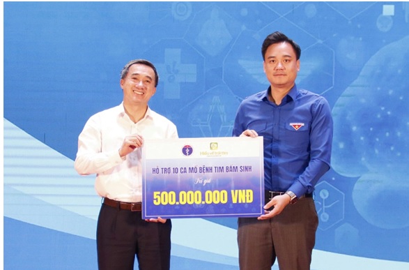 Thứ trưởng Trần Văn Thuấn trao tặng kinh phí hỗ trợ 10 ca mổ tim bẩm sinh của Bộ Y tế và Quỹ Hiểu về trái tim tại chương trình.