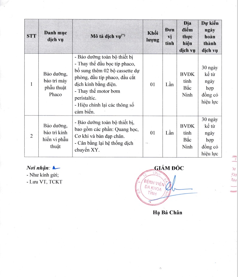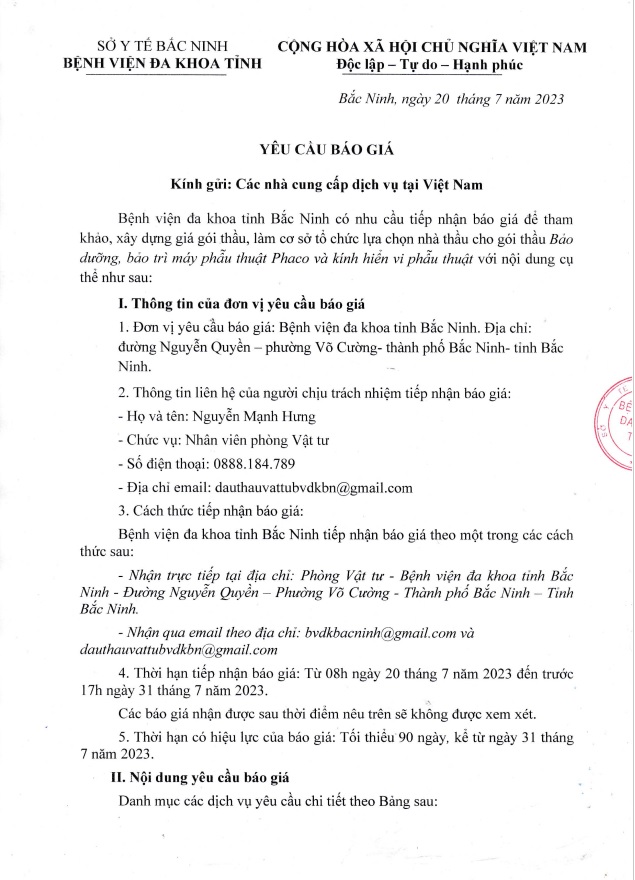 Yêu cầu báo giá Gói thầu Bảo dưỡng, bảo trì máy phẫu thuật Phaco và kính hiển vi phẫu thuật