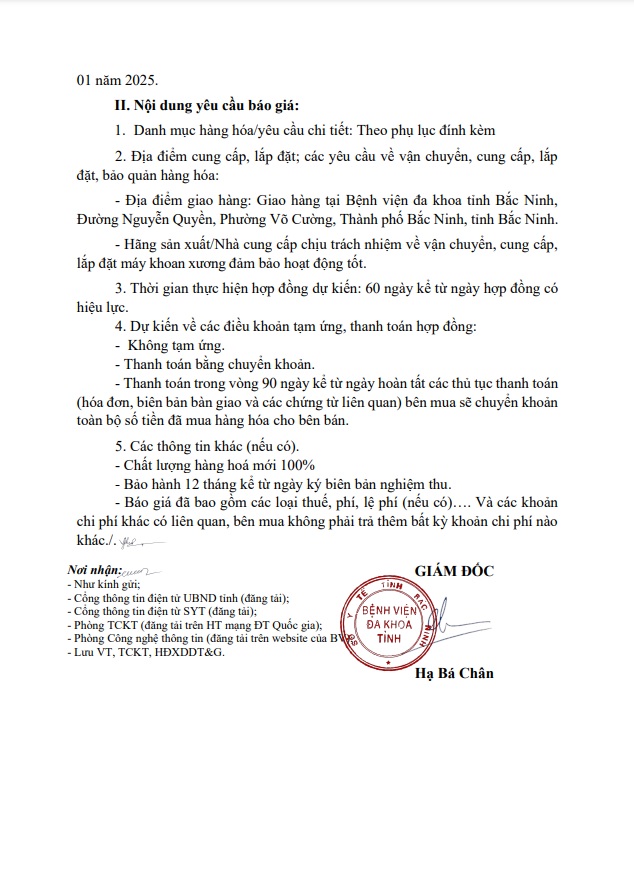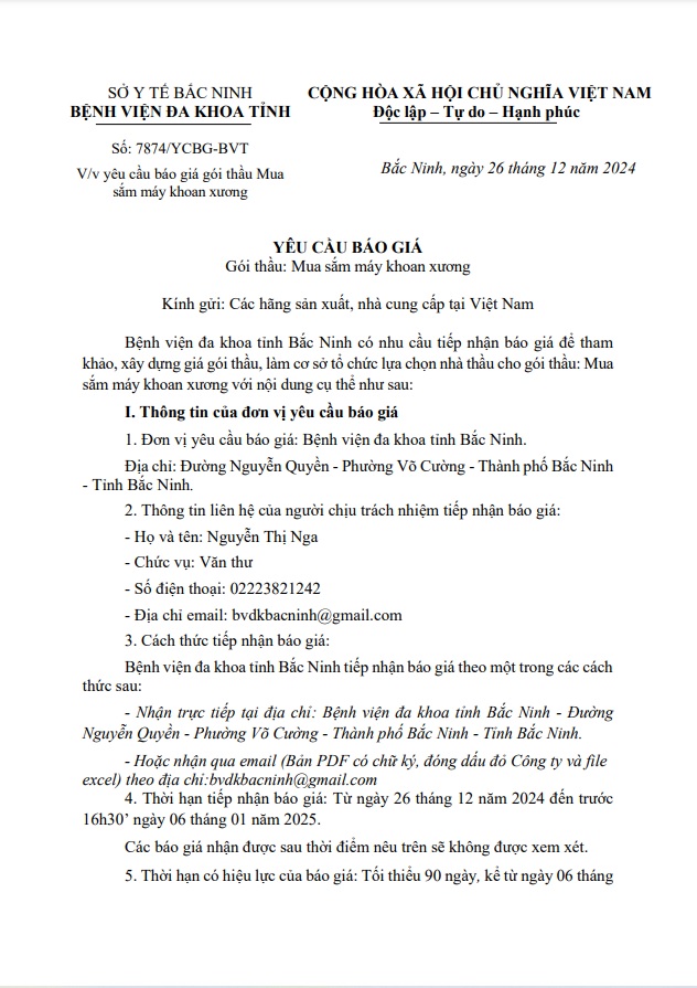 Yêu cầu báo giá gói thầu Mua ắm máy khoan xương