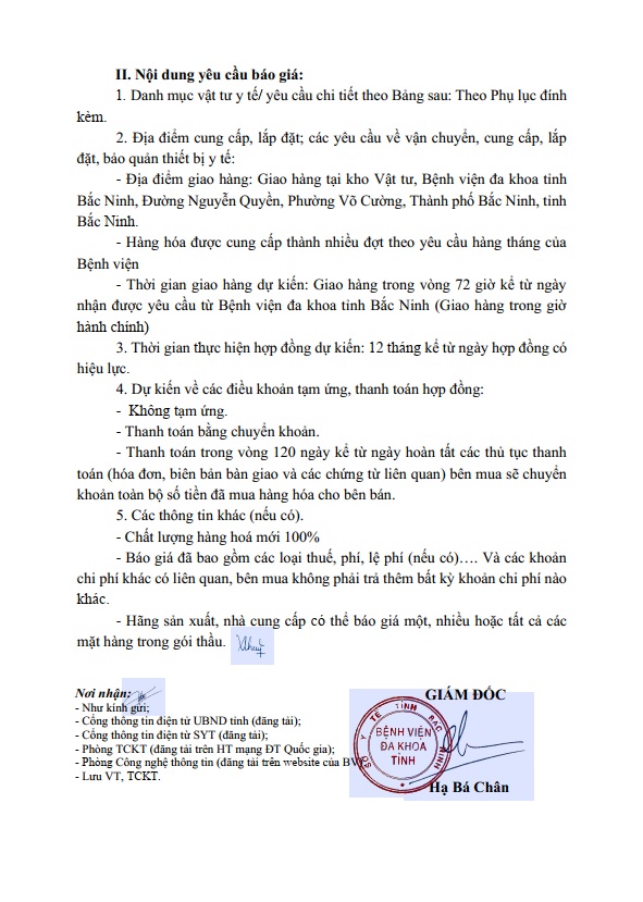 Gia hạn yêu cầu báo giá gói thầu Lắp đặt hệ thống ổ khí đầu giường cho Trung tâm cấp cứu và vận chuyển 115