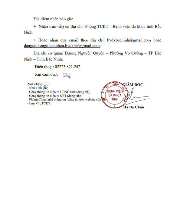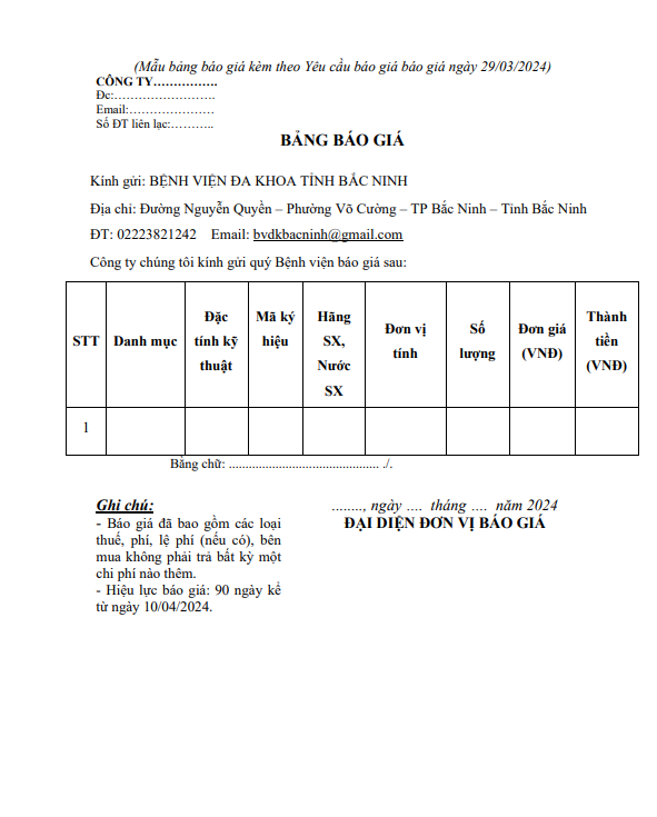 Thư mời báo phí dịch vụ (Lần 3) V/v Thẩm định giá gói thầu Mua sắm vật tư tiêu hao, linh kiện thay thế cho hệ thống CT 16 lát cắt Somatom Scope
