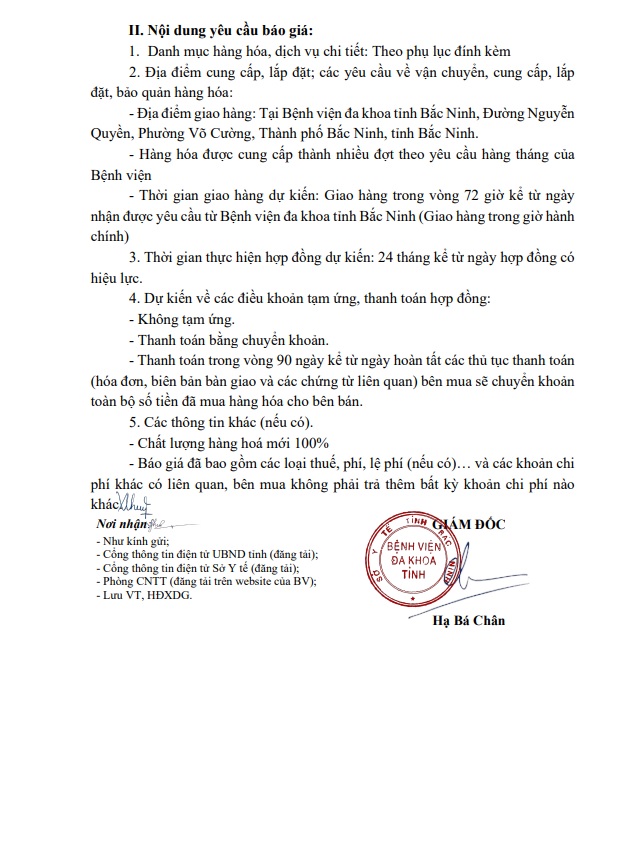 Yêu cầu cung cấp báo giá gói thầu: Mua sắm thuốc generic tại Bệnh viện đa khoa Bắc Ninh số 2 năm 2025 (Lần 8)