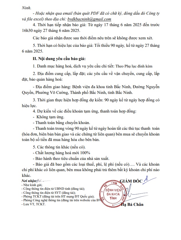 Thư mời báo giá: Gói thầu Mua sắm vật tư, linh kiện phục vụ công tác thay thế điều hòa các trung tâm, khoa phòng - Gói 3 năm 2023