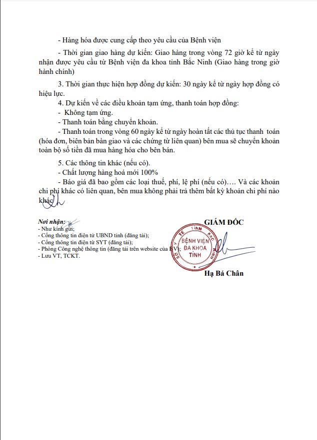 THƯ MỜI BÁO GIÁ Gói thầu mua sắm và thay thế linh kiện máy chạy thận nhân tạo Dialog