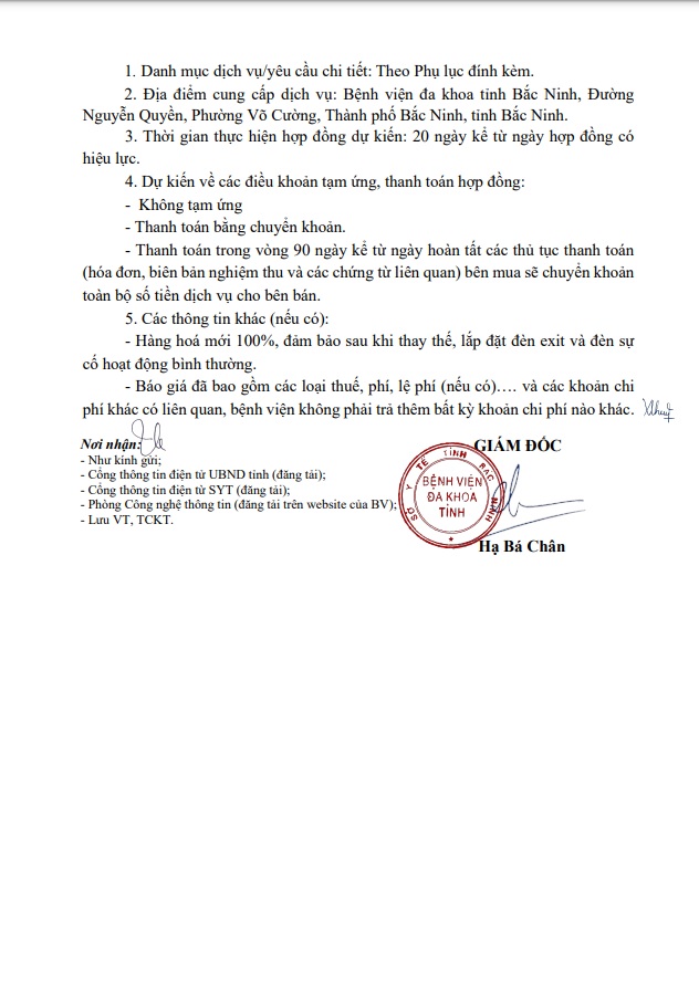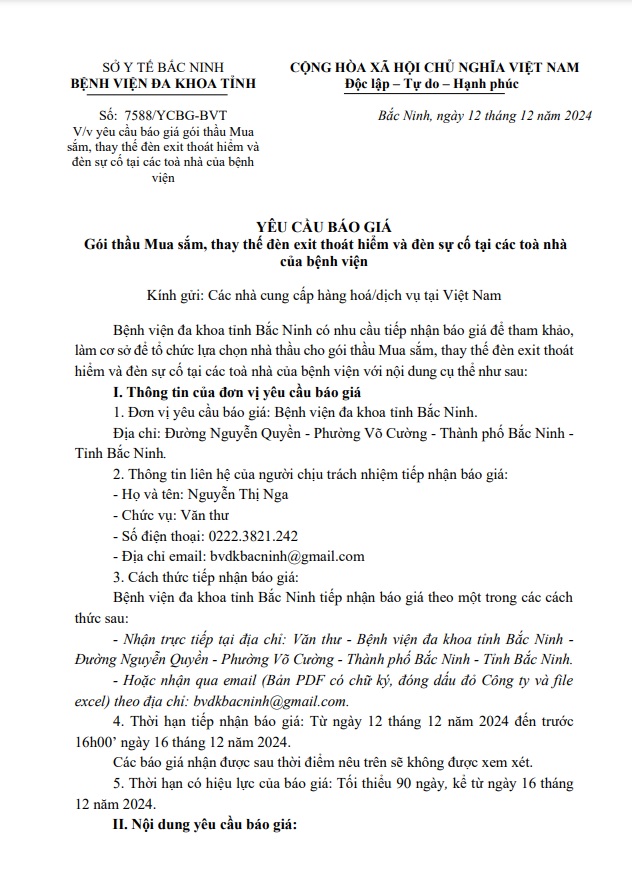 Yêu cầu báo giá Gói thầu: Mua sắm, thay thế đèn exit thoát hiểm và đèn sự cố tại các toà nhà của bệnh viện