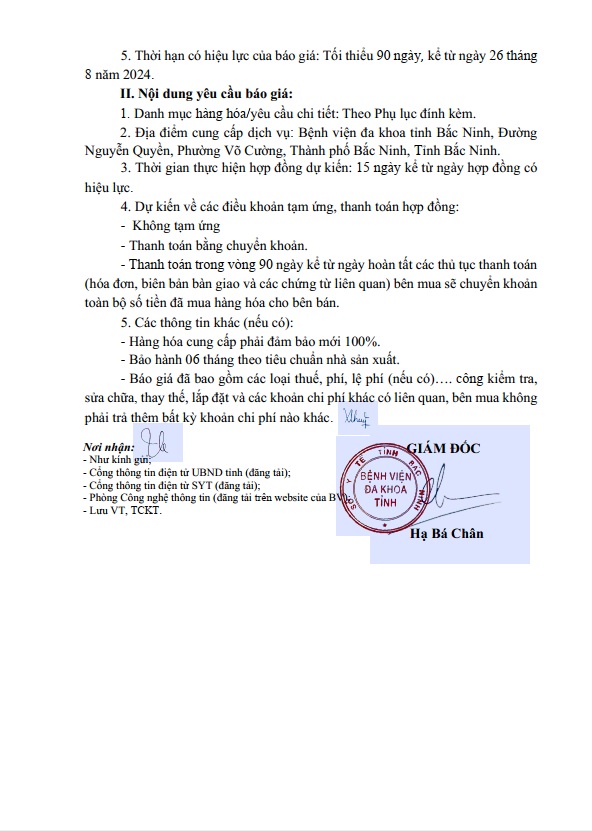 Thư mời báo phí dịch vụ ( lần 2) V/v Thẩm định giá gói thầu Mua sắm hệ thống thăm dò điện sinh lý