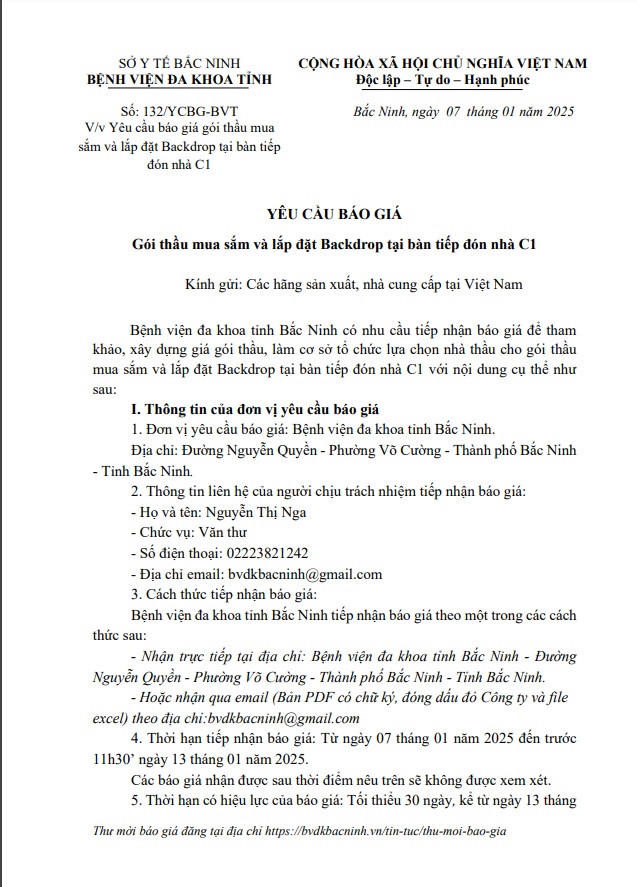 Yêu cầu báo giá Gói thầu mua sắm và lắp đặt Backdrop tại bàn tiếp đón nhàn C1