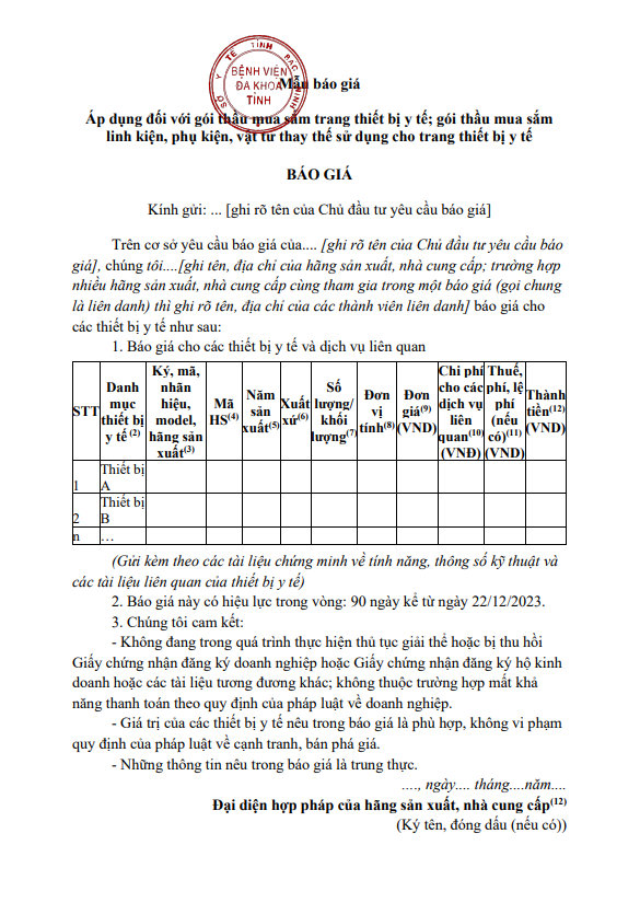 Thư mời báo giá