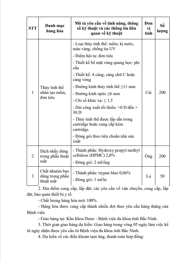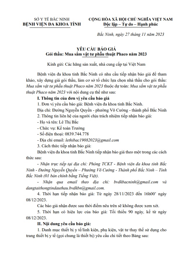 Yêu cầu báo giá Gói thầu: Mua sắm vật tư phẫu thuật Phaco năm 2023