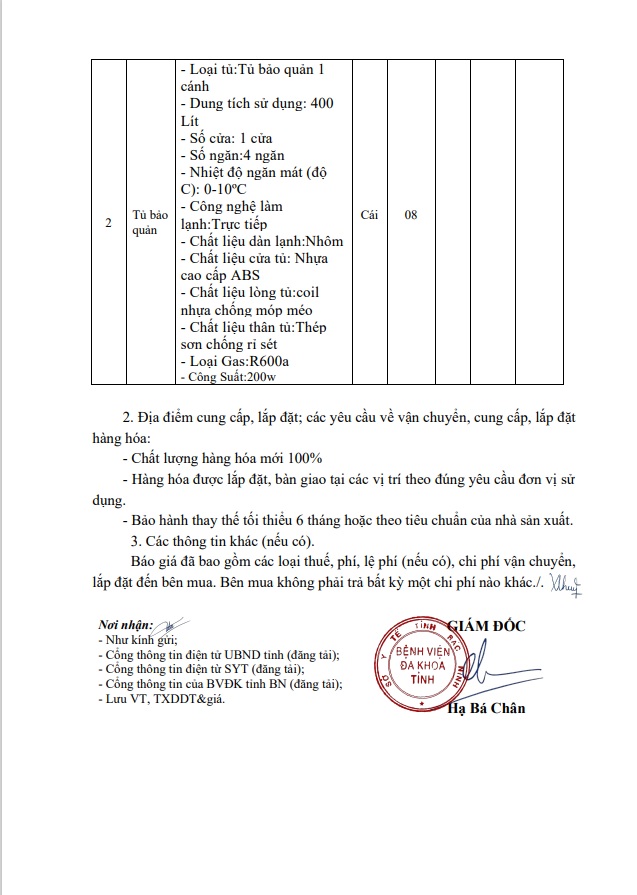 Yêu cầu báo giá Gói thầu Mua tủ bảo quản cho khoa Dược và khoa Thận Tiết niệu - Lọc máu