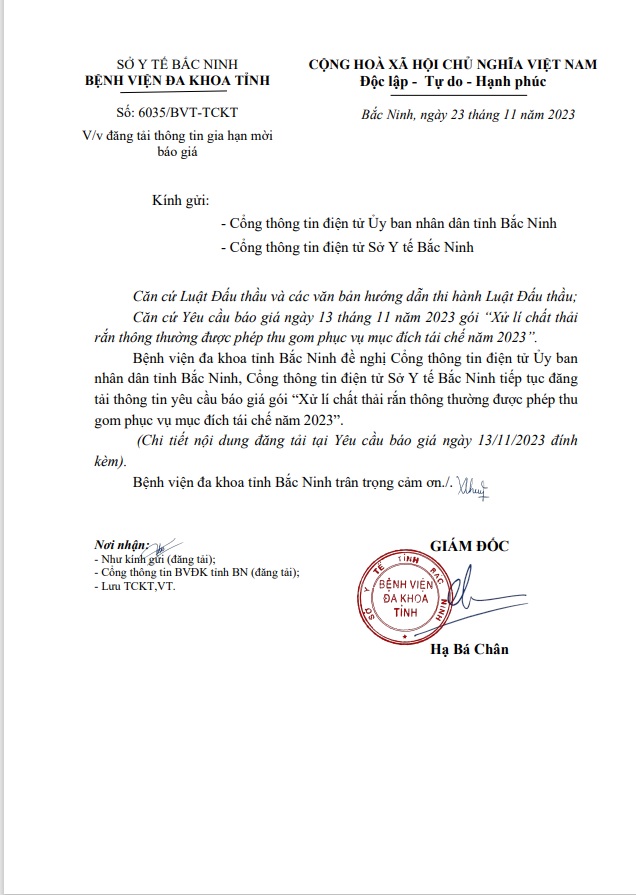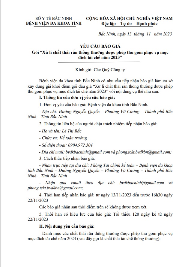 Yêu cầu báo giá Gói " Xử lý chất thải rắn thông thường được phép thu gom phục vụ mục đích tái chế năm 2023"