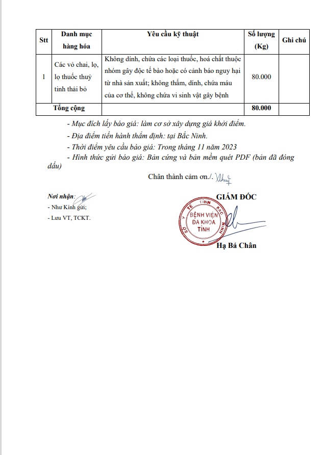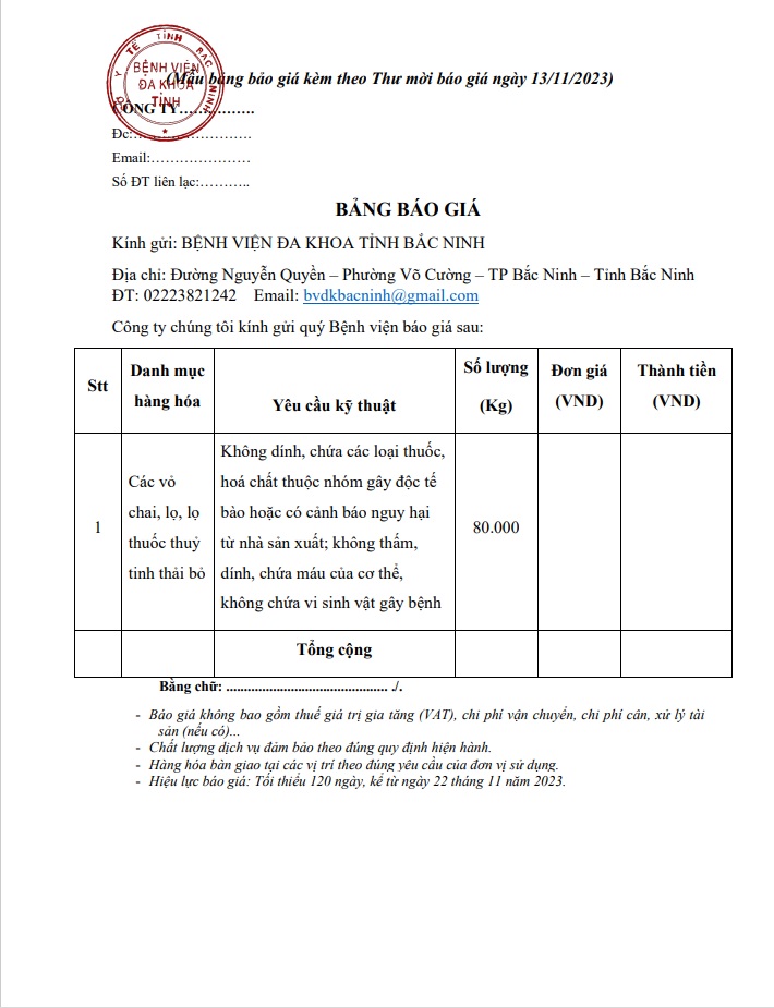 Yêu cầu báo giá gói thầu Mua sắm vật tư, hoá chất xét nghiệm nước tiểu năm 2023