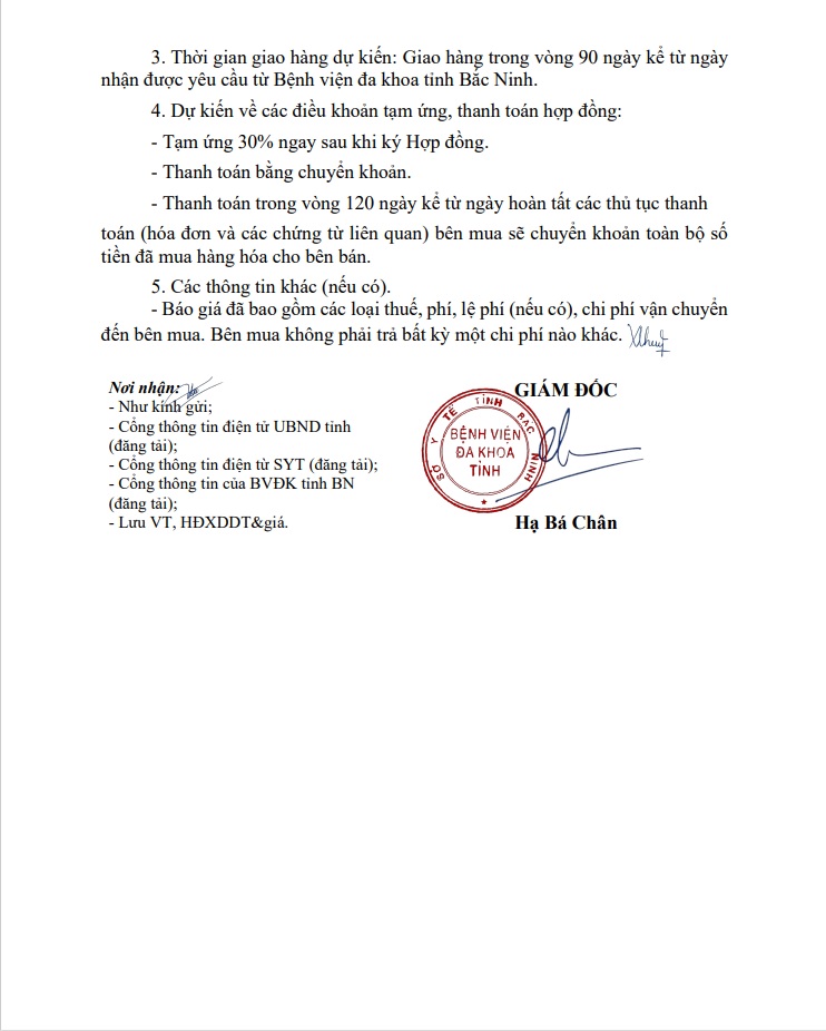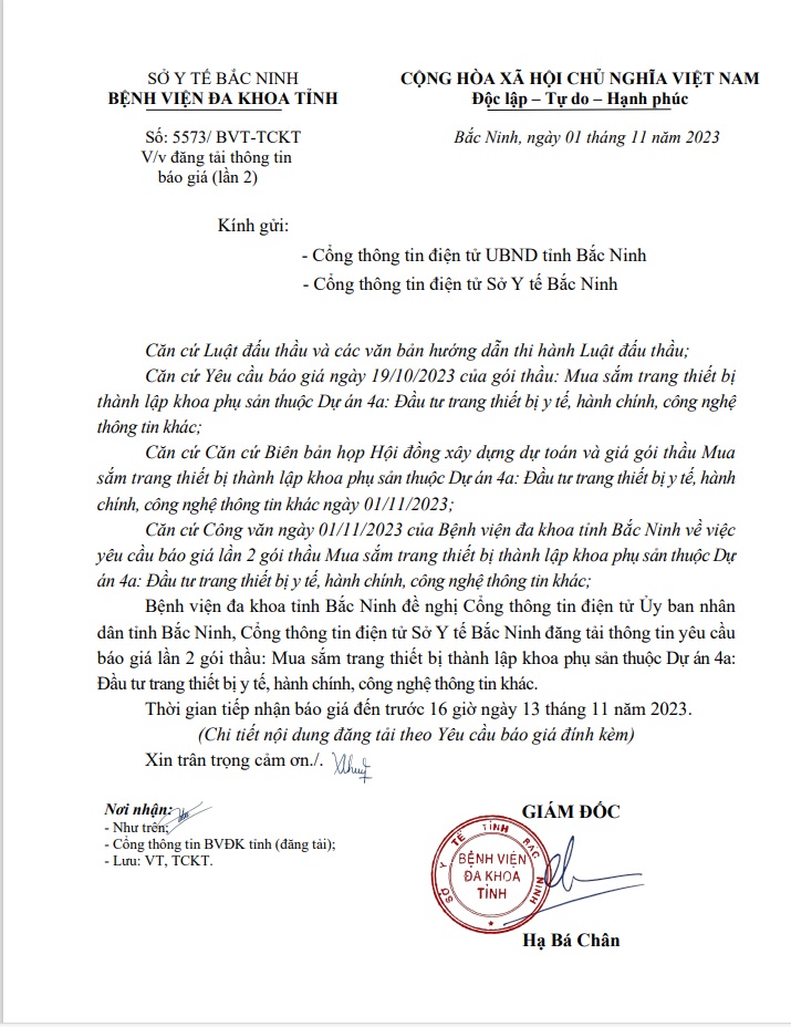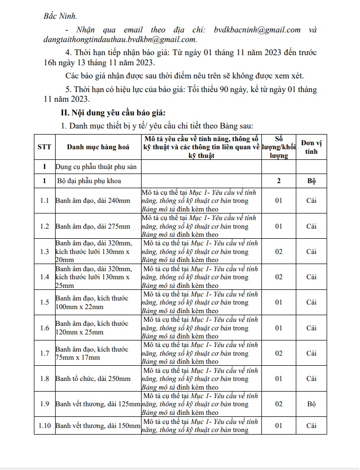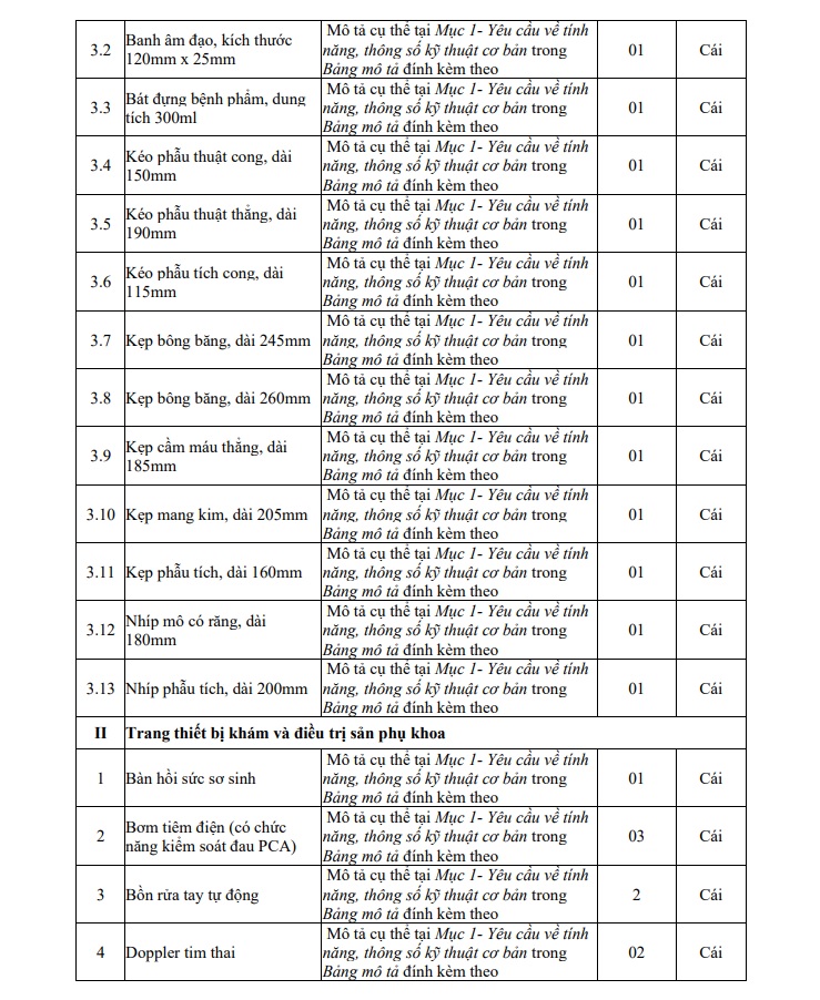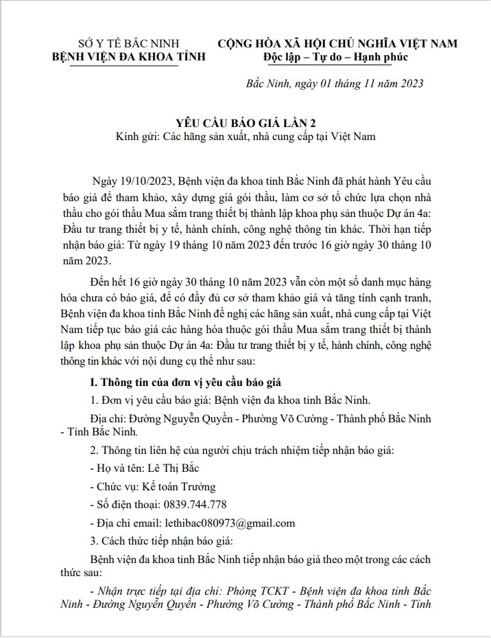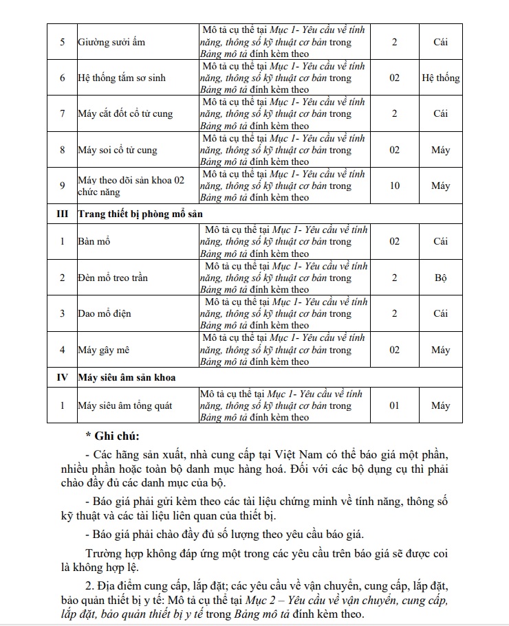Yêu cầu báo giá lần 2 Gói thầu Mua sắm trang thiết bị thành lập khoa phụ sản thuộc Dự án 4a