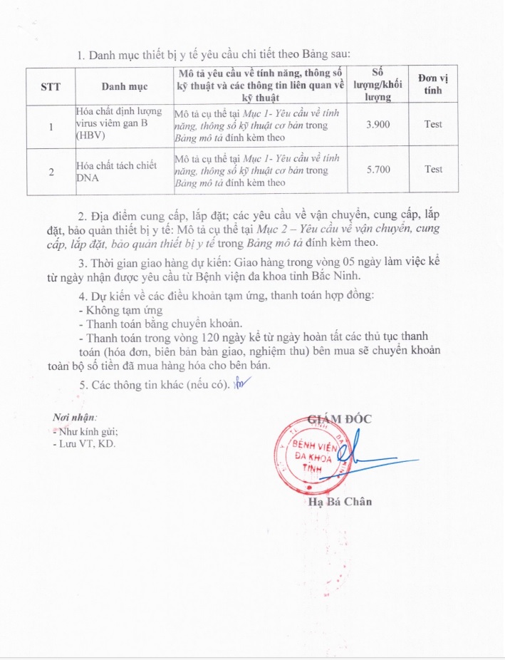 Thư mời báo giá Gói thầu Mua sắm vật tư tiêu hao đặc thù